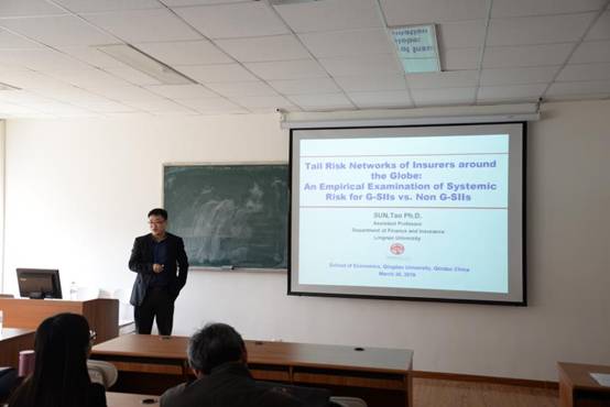 2018年3月30日下午,香港岭南大学孙涛教授在金家岭校区为经济学院师生做了题为《网络分析在保险行业系统性风险研究的应用》的报告。