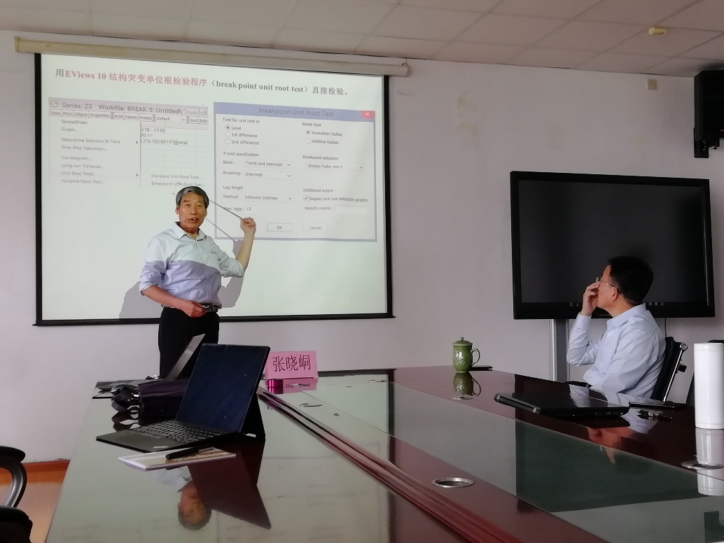 2019年6月11日至13日上午,张晓峒教授应邀做客经济学院2019年第14期“经济学名家讲堂”,为全院师生开设了“结构突变检验”、“ARIMA模型应用”等多个计量经济学前沿专题讲座。