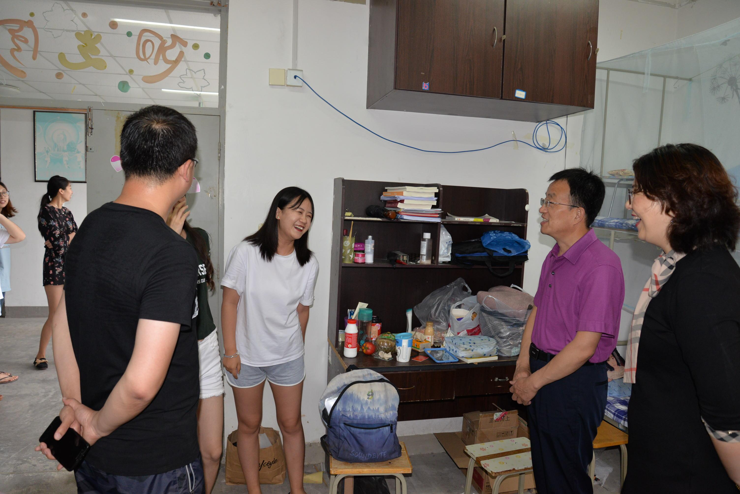 6月28日下午,芊芊细雨,瑟瑟清风,经济学院院长刘喜华、党委副书记王海荣和2015级辅导员李冉一同走访毕业生宿舍,与毕业生面对面接触,心贴心交流。老师们听取了他们对学院发展建设的意见和建议,询问他们对于未来的展望与规划,向他们表达了离别之际的不舍并给予了真挚的鼓励和祝福。走访临近结尾时,学生们坚持把老师们送到楼下,在门口与老师依依惜别,有些同学还为此流下了感动的眼泪。