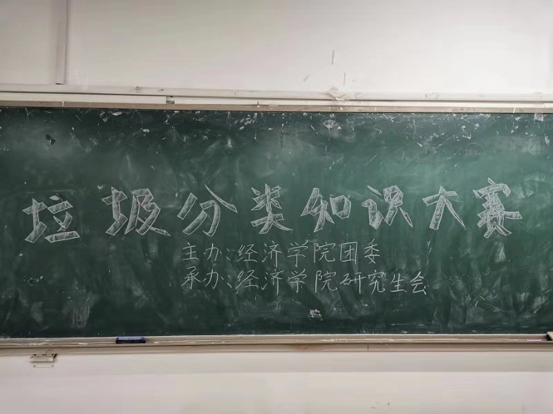为全面贯彻落实党的十九大精神,以习近平新时代中国特色社会主义思想为指导,切实履行立德树人根本任务,营造校园育人的良好环境,经济学院研究生会举办了以"创建文明校园,争做文明青年"为主题的垃圾分类知识大赛,取得了圆满成功。
