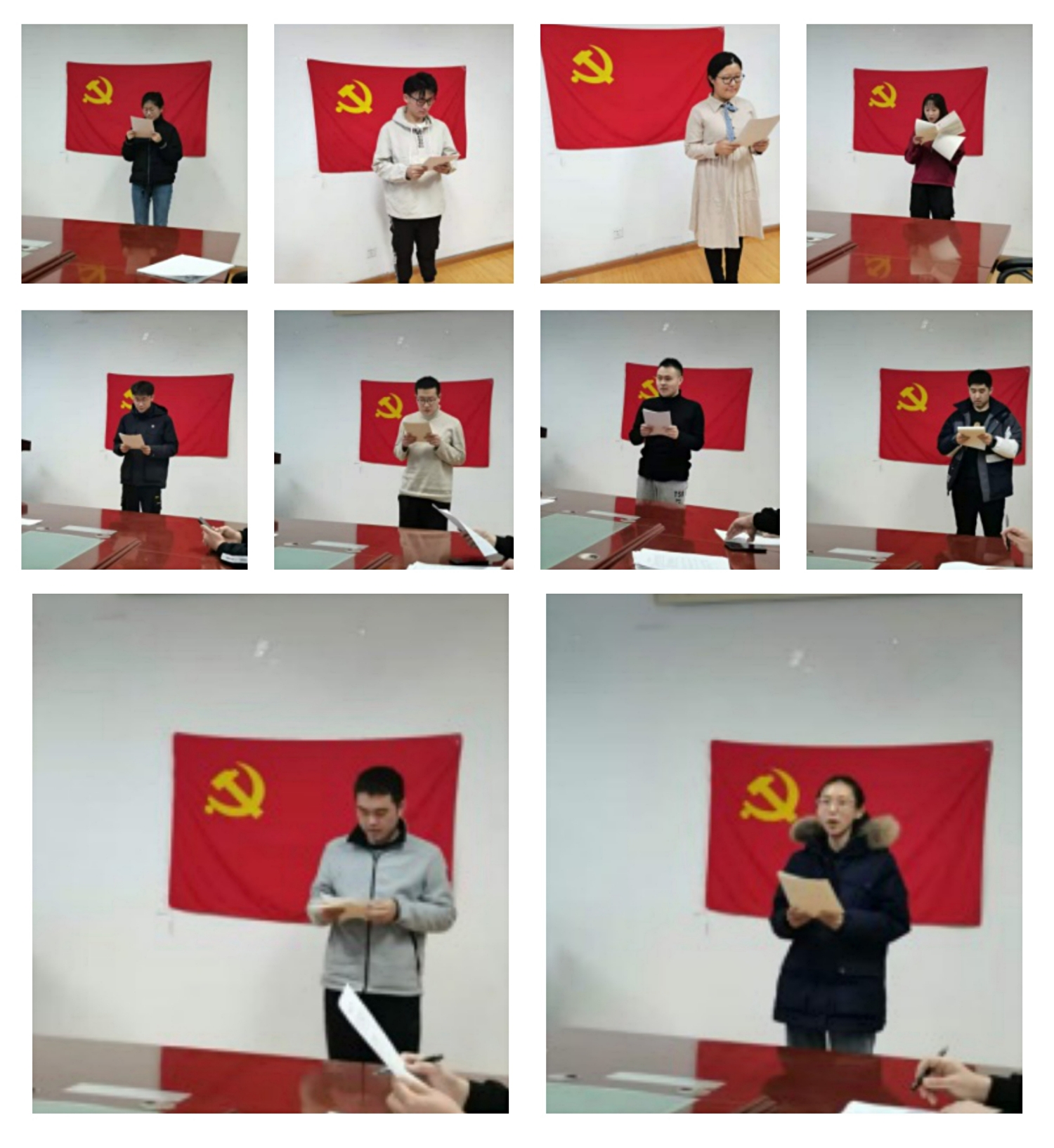 苏娇、王雅珺、李嘉菲等二十六名同志认真宣读转正申请书,汇报了预备期间的基本情况,从思想、工作、学习、生活等方面总结了自己预备期间的成长和进步,找出自己的差距和不足,表明自己的态度和决心。