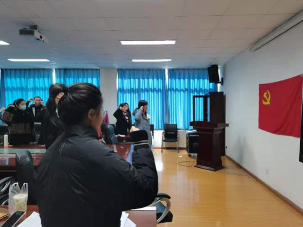 面对党旗,全体党员高举起右手,在神圣庄严的气氛中重温入党誓词,表明自己追随党的步伐、努力前行的决心。