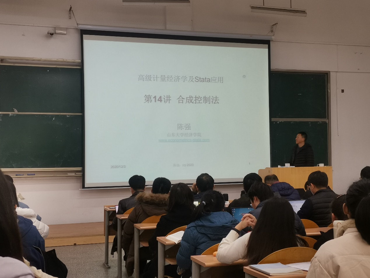 2020年12月3日下午,山东大学陈强教授应邀到我院开展学术交流与指导,并做客经济学院“经济学名家讲堂”,在金家岭校区西院1号教学楼111阶梯教室为师生做了《合成控制法与回归控制法》的精彩学术讲座。经济学院的部分教师和百余名学生参加了此次学术交流。