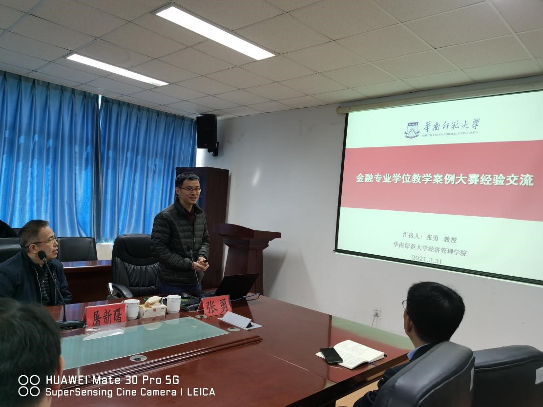 2021年3月31日上午,华南师范大学张勇、屠新曙教授应邀到我院开展学术交流与指导。在金家岭校区经济学院307会议室为师生做了金融硕士专业学位论文写作与案例大赛经验报告,经济学院教师与学生踊跃参加报告会。