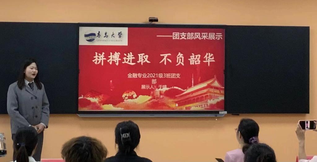 通过前期先进团支部评选及团支书讲团课活动,2020级财政2班、金融1班、金融2班、金融3班、经济4班、跨境电商及2021级金融1班、金融3班、金融4班、经济4班、跨境电商共十个优秀团支部脱颖而出。各班团支书从支部思想、学习、工作、生活以及获奖情况、未来展望等方面进行了充分的风采展示。各支部在五育工作、学风建设、志愿服务、文体科创等方面各具特色,为基层团支部的建设带来了宝贵的经验。