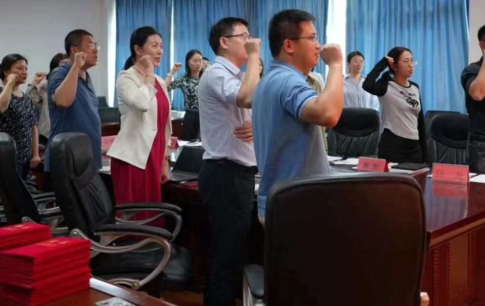 团委书记戴俊杰宣读2023级新生班主任名单,邹立明等11位教师被聘任为2023级班主任。党委副书记于文洁为新生班主任颁发聘书,辅导员薛羽彤为新生班主任颁发班主任手册。2023级新生班主任程漫漫领誓,全体班主任老师庄严宣誓:忠诚于党和人民的教育事业,恪尽职守,育人为本;明德守法,爱生乐群;博学求真,守正出奇;追求卓越,勇于担当,为实现民族复兴、推动人类文明进步而奋斗。