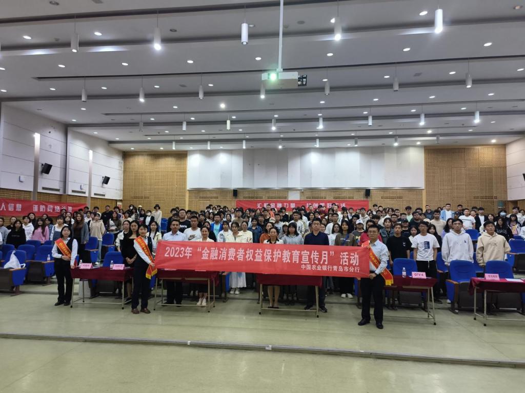 10月14日,由中国农业银行青岛市分行与青岛大学团委联合主办、经济学院承办的金融知识进校园活动在金家岭校区图文4楼报告厅举行。经济学院党委副书记于文洁、团委书记戴俊杰,中国农业银行青岛市分行个人金融部副总经理黄鑫、农行崂山二支行副行长许艳艳、农行崂山支行个人金融部经理杨广鑫出席本次活动。