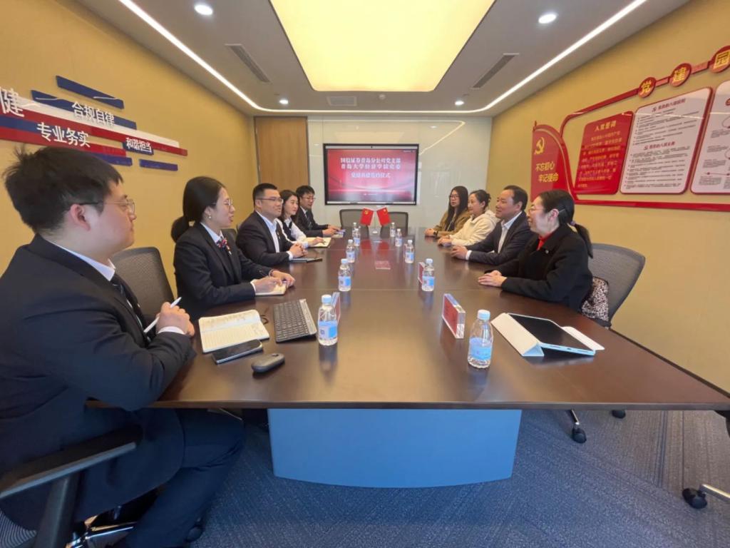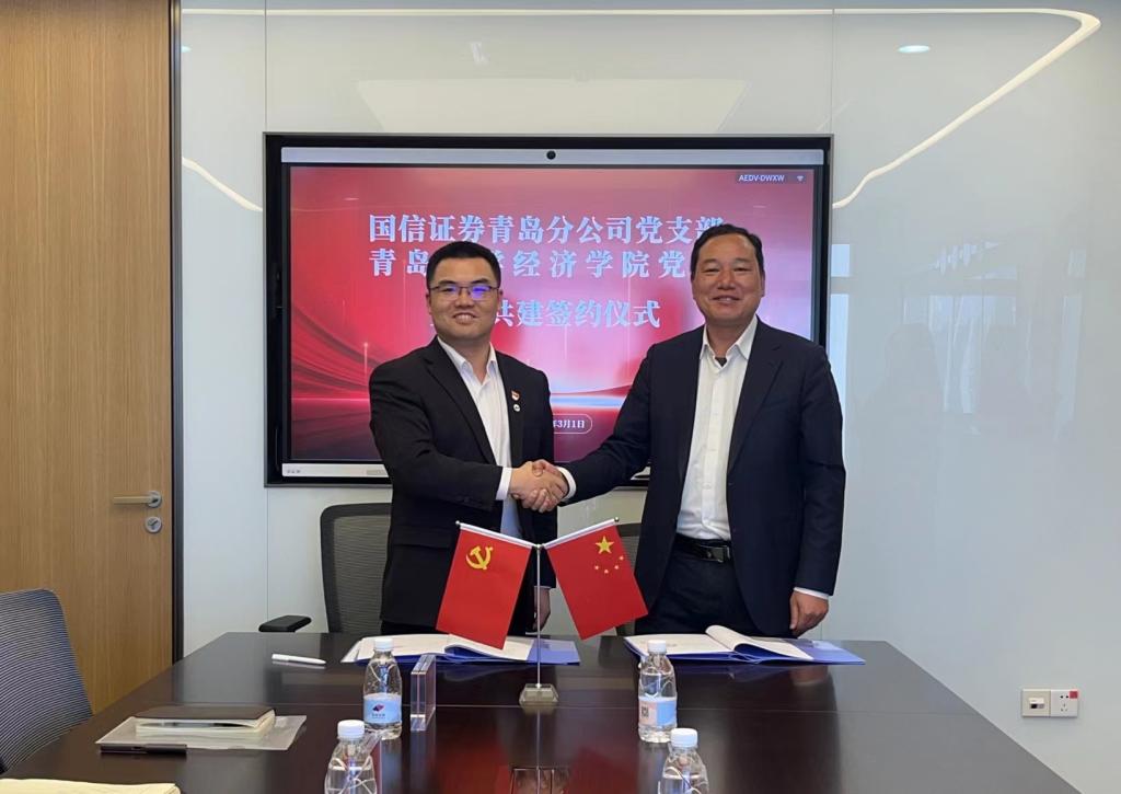 3月1日,经济学院党委与国信证券青岛分公司党支部党建共建签约仪式在国信证券青岛分公司会议室举行。经济学院党委书记邱建国,党委副书记于文洁,团委书记戴俊杰,辅导员任越、程漫漫,青岛分公司党支部书记、负责人杨翔,党支部委员苗慧慧,分公司相关管理部室负责人出席签约仪式。