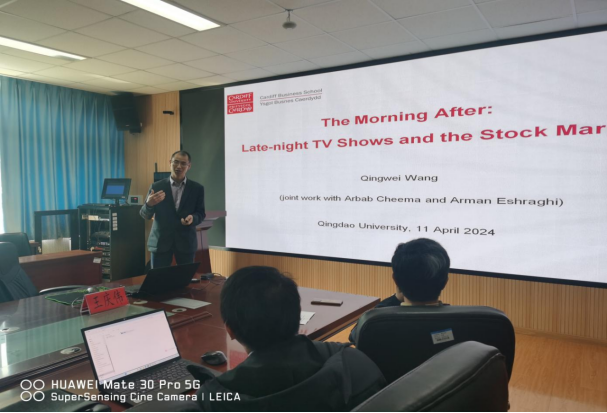 2024年4月11日上午10:00,英国卡迪夫大学商学院王庆伟教授在开云网页版登录入口三号实验楼307会议室为经济学院师生做了题为《The Morning After: Late-night TV Shows and the Stock Market》的学术报告。讲座由经济学院副院长吕学梁教授主持,学院70余名师生参与了此次学术交流活动。