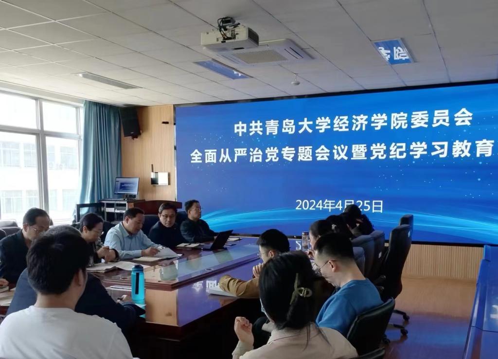 4月25日,经济学院党委在守实楼307召开全面从严治党专题会议暨党纪学习教育大会,传达学校近期有关会议精神,研究部署党纪学习教育工作。院党委书记邱建国主持会议并讲话,院长刘喜华等中心组成员、各党支部书记参加会议。