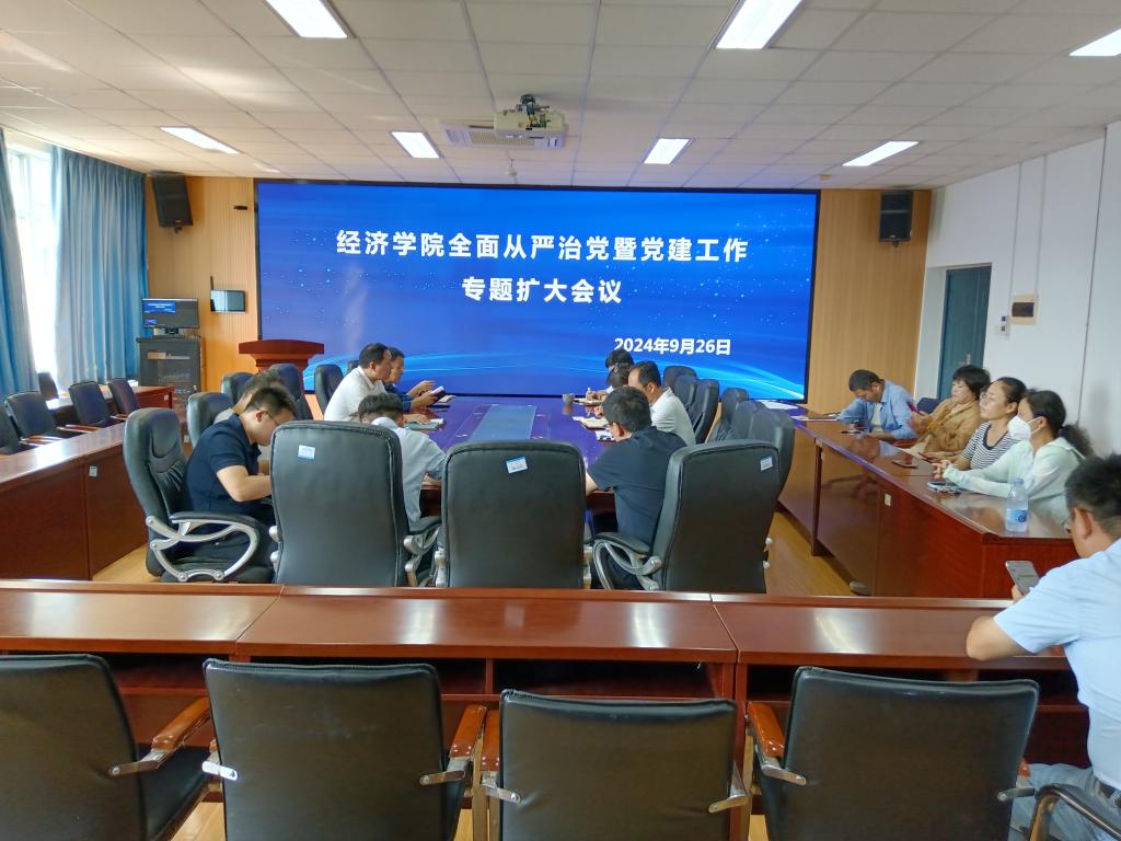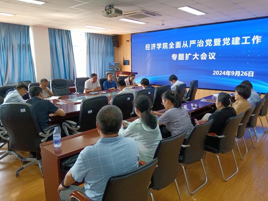 9月26日,经济学院在金家岭校区守实楼307会议室召开2024下半年全面从严治党专题工作会议,传达学习习近平总书记在党的二十届三中全会上关于健全全面从严治党体系、深入推进党风廉政建设和反腐败斗争的重要讲话精神和学校党委巡察工作领导小组会议精神,分析当前全面从严治党工作存在的短板和弱项,部署下半年重点工作。学院党委领导班子成员、院长助理、党支部书记、系主任、各部门负责人参加会议,会议由党委书记邱建国主持。