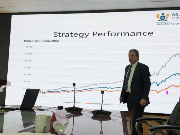 2024年10月11日上午10:00,新西兰梅西大学商学院国际事务副院长Jeffrey Stangl博士在开云网页版登录入口三号实验楼307会议室,为经济学院师生做了题为《The myth of sector rotation》的学术报告。本次讲座由经济学院副院长吕学梁主持,学院60余名师生共同参与了此次学术交流活动。