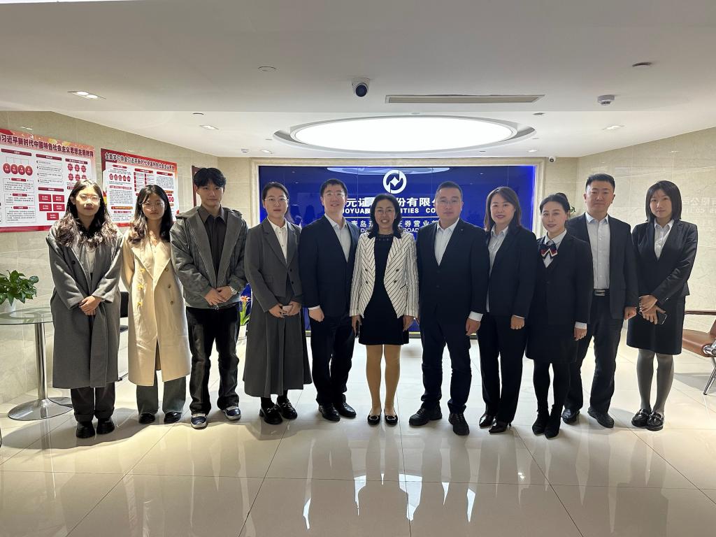 座谈会上,于玉龙详细介绍了国元证券发展历史及现状,并就国元证券山东分公司具体情况和发展方向展开交流。于玉龙表示,国元证券青岛辽宁路营业部作为山东省内成立时间最早、青岛市营业面积最大的证券营业部,非常希望在党建共建、人才招聘、专家交流等方面展开深入合作。于文洁围绕学院历史、专业设置、培养优势等方面介绍了经济学院基本情况,对校企如何深入交流合作提出了建设性意见。她表示,经济学院始终坚持知识与实践结合的育人模式,致力于培养复合型人才。当前阶段2025届毕业生已进入就业启动阶段,作为人才供应链首末两端共同体,加强校企合作,有助于互惠共赢、共同发展。