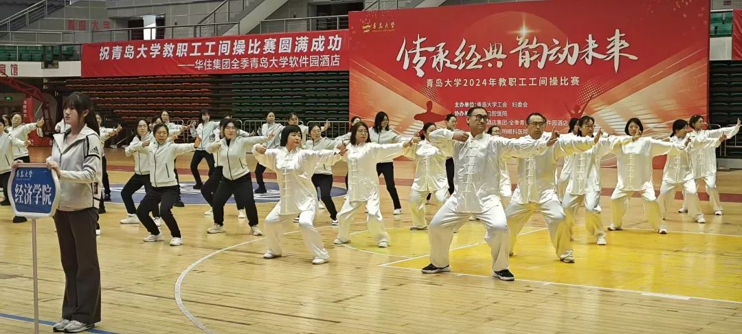 11月28日,由青岛大学工会、妇委会主办的“传承经典,韵动未来”教职工工间操比赛顺利举行。经济学院教职工代表身着统一服装,动作舒展,整齐划一,八段功法灵活完整,松静自然,充分展现了我院教职工良好的精神风貌与积极进取的比赛态度。在25支八段锦队伍中脱颖而出,荣获本次比赛二等奖。