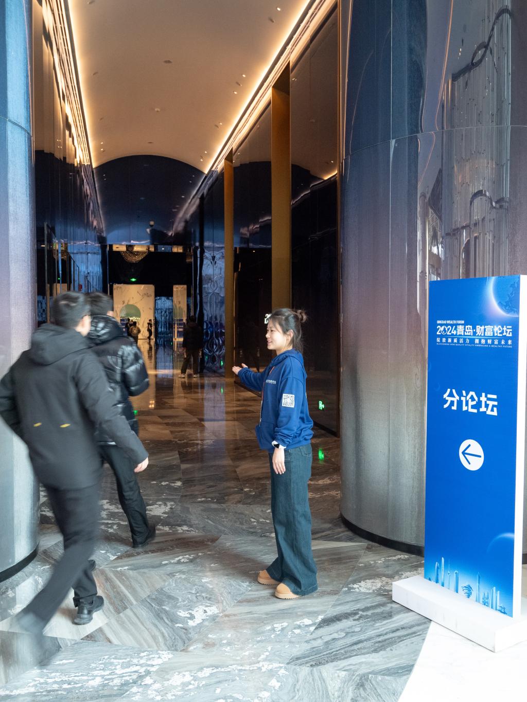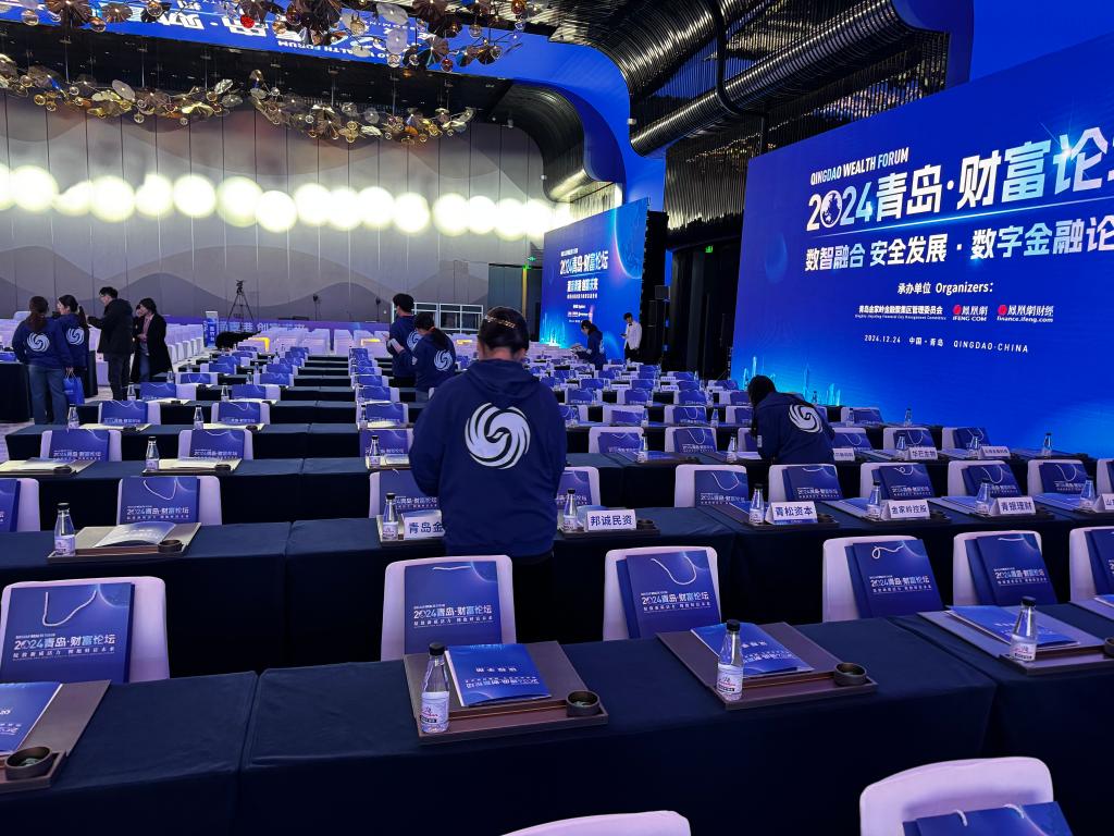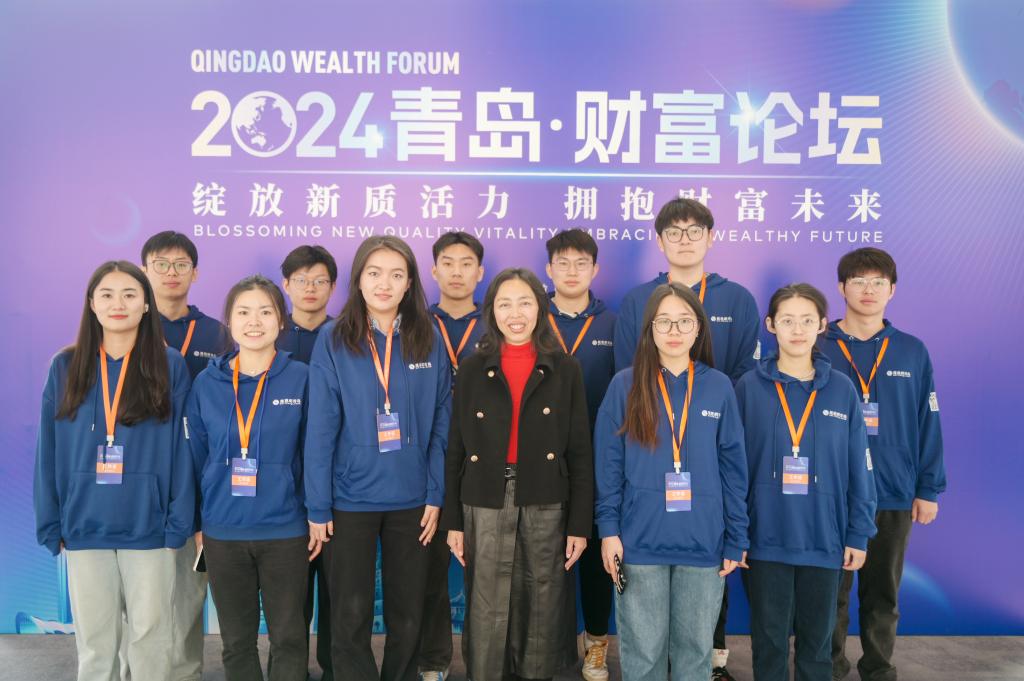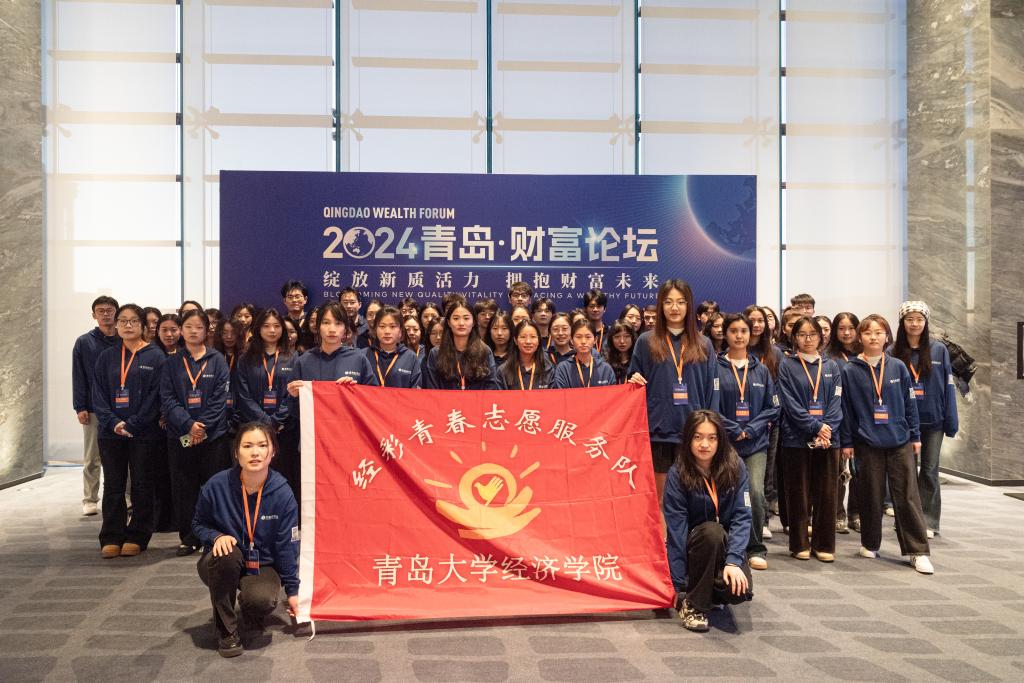 12月24日,12月24日,由青岛市人民政府主办,中共青岛市委金融委员会办公室、崂山区人民政府、青岛金家岭金融聚集区管理委员会、凤凰网承办的“绽放新质活力,拥抱财富未来”2024青岛财富论坛在青岛美高梅酒店成功举办。来自国内经济金融领域的相关领导、专家学者、行业领军人才和企业家等500余位嘉宾齐聚一堂,共话金融行业新趋势、新未来。我校经济学院党委副书记于文洁带领经彩青春服务队80名志愿者为大会提供志愿服务,为论坛的顺利举行保驾护航。
