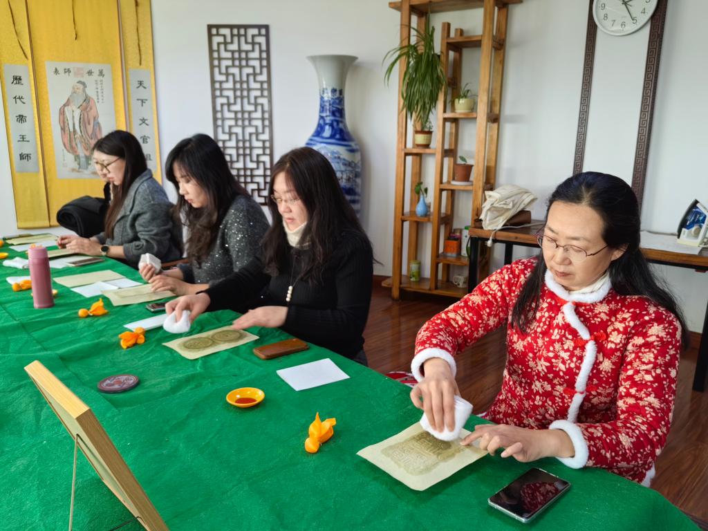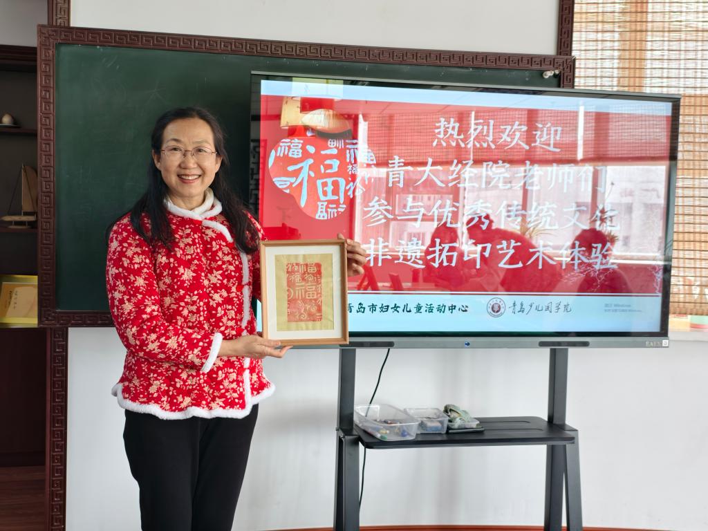 为庆祝“三八”国际劳动妇女节,传承中华优秀传统文化,领略非遗拓印的独特魅力,激发教职工的工作热情和创造力,3月5日下午,经济学院工会、妇委会举办“拓福迎春”非遗拓印体验活动。院党委副书记、工会主席于文洁带领教职工赴青岛市妇女儿童活动中心参加活动。