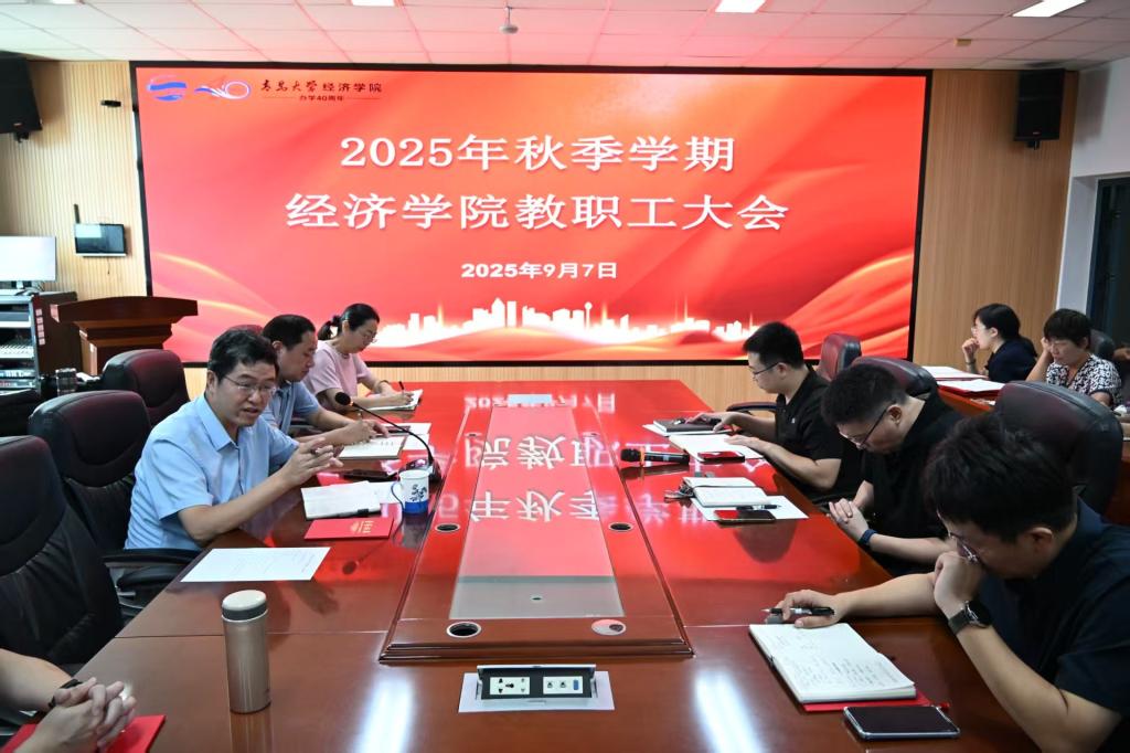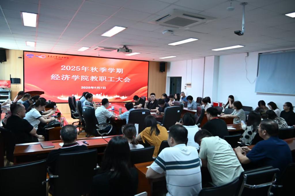 9月7日上午,经济学院召开2025年秋季学期工作部署会,学院党委书记邱建国等领导班子成员及全体教职工参加会议。