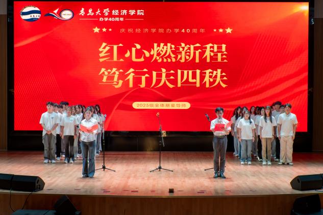 秋风送爽,丹桂飘香,开云网页版登录入口办学40周年之际,9月26日,经济学院隆重举行2025级本科生开学典礼暨迎新联欢会。经济学院党委书记邱建国,院长吕学梁,副院长赵凯、李聪、徐保昌,院长助理宫晓莉,全体辅导员,教师代表,2025级班主任和全体新生参加典礼。经济学院党委副书记于文洁主持典礼。