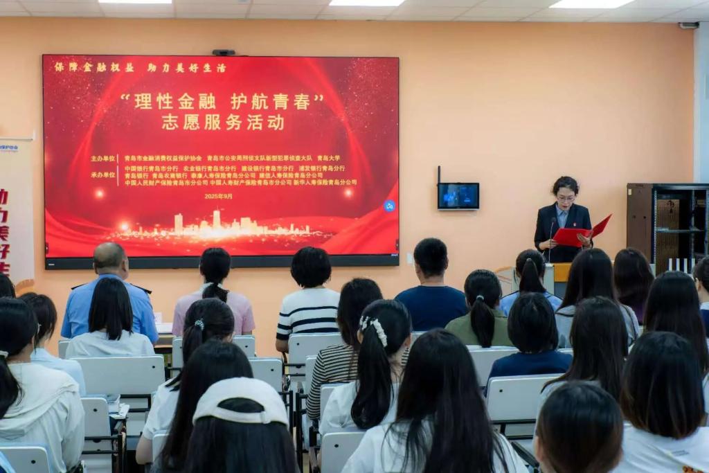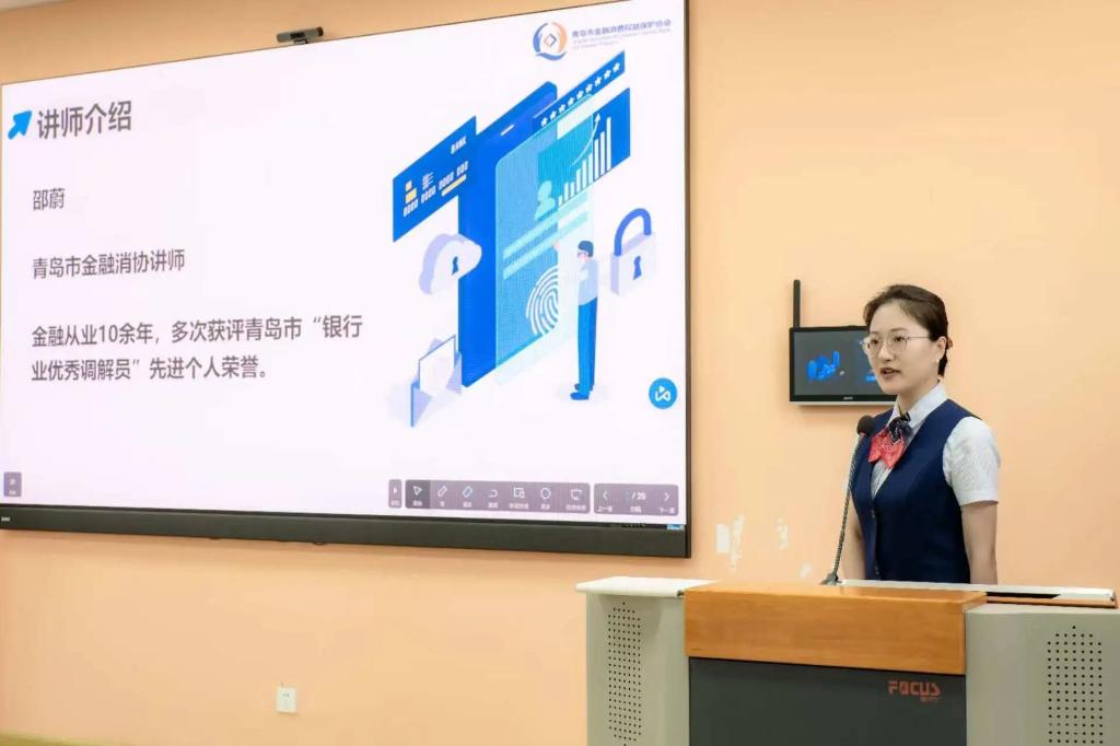 金融教育宣传周到来之际,为进一步普及金融知识,提升大学生金融风险防范意识,9月18日,由青岛市金融消费权益保护协会联合青岛市公安局刑侦支队新型犯罪侦查大队、开云网页版登录入口共同主办的”金融知识进大学“主题宣传活动在青岛大学金家岭校区西院三号实验楼423教室成功举办,经济学院党委副书记于文洁、团委书记戴俊杰、学工办主任任龙、辅导员程漫漫、周晓彤出席本次活动。活动特邀国家金融监督管理总局青岛监管局一级调研员、青岛市金融消费权益保护协会专职副会长王芹、青岛市金融消费权益保护协会副秘书长肖珍凤、青岛市公安局刑侦支队新型犯罪侦查大队四级高级警长杨文志参加。