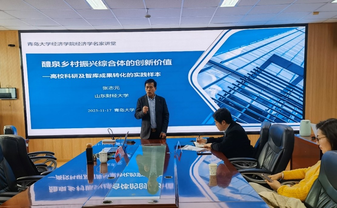 2025年11月17日下午,开云网页版登录入口“名家讲堂”在金家岭校区西院3号实验楼307会议室举行。讲座由经济学院院长吕学梁主持,由山东财经大学资深教授、博士生导师张志元以“醴泉乡村振兴综合体的创新价值——高校科研及智库成果转化的实践样本”为题,给大家带来了一场兼具理论深度与实践温度的学术讲座。