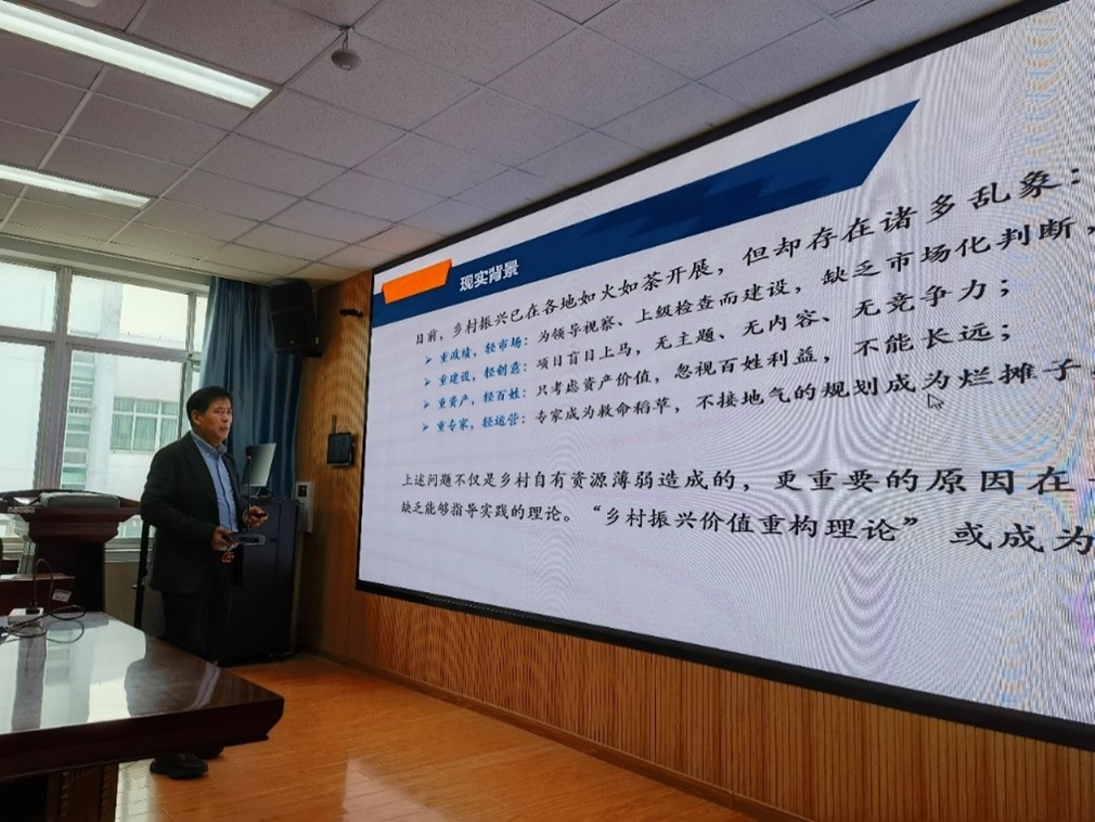 讲座伊始,张志元教授从醴泉乡村振兴综合体的发展现状切入,系统梳理了这一实践样本的区位优势,为综合体的创新发展奠定了底层逻辑。随后,他聚焦“资源整合”这一核心命题,深度剖析醴泉乡村振兴综合体如何通过高校科研团队的介入,实现“产学研用”一体化融合:一方面,高校科研力量为其注入现代农业技术、文旅规划理念、品牌运营策略等创新要素;另一方面,综合体的实践场景又为高校智库提供了成果转化的试验田,形成“科研—实践—反馈—迭代”的良性循环。这种模式不仅激活了醴泉的乡村经济,更构建起高校服务地方发展的有效范式。