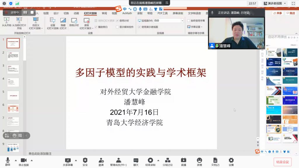 为丰富同学们的小学期生活,积累专业知识,扩宽金融视野。7月16日下午,对外经济贸易大学金融学院潘慧峰教授开展题为“多因子模型的实践与学术框架”的高端讲座,开云网页版登录入口师生200余人积极参与此次活动,讲座由经济学院副院长吕学梁主持。