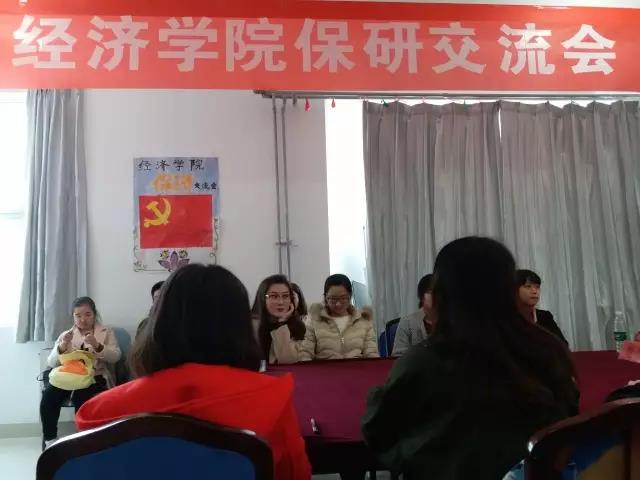 交流伊始,进行了党员先锋岗活动。随后三位成功拿到保研资格的优秀学生代表进行了经验分享。都晓芸作为先锋党员首先介绍了经济学院党组织为保研考研同学所提供的帮助,并为同学选择保研还是考研提出了指导性意见。张娜指出做好预报名工作的重要性,要提前关注目标学校招生信息,对自己准确定位,并提供了实用的面试技巧。戈盈凡则推荐同学们关注大学的夏令营活动,强调了其重要性,并就夏令营的申请工作作了详细介绍。之后的自由交流环节,14级学生代表们争相提问,将心中对于保研的疑惑一一提出,得到了前辈的耐心回复,整场谈论热烈、气氛浓厚。