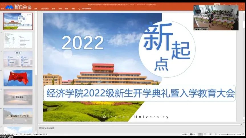 9月9日上午,经济学院在金家岭校区三号实验楼420举行了2022级新生开学典礼暨入学教育大会,因疫情防控要求,此次大会以线上线下相结合的形式开展。经济学院院长刘喜华,党委副书记于文洁,副院长陈东景、逯进、吕学梁,本科教学办主任孙延鹏,学工办主任任龙,2022级辅导员戴俊杰、吴不然,班主任代表出席会议。