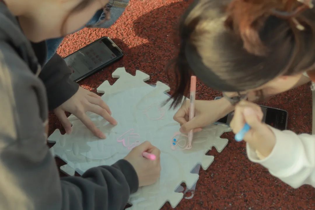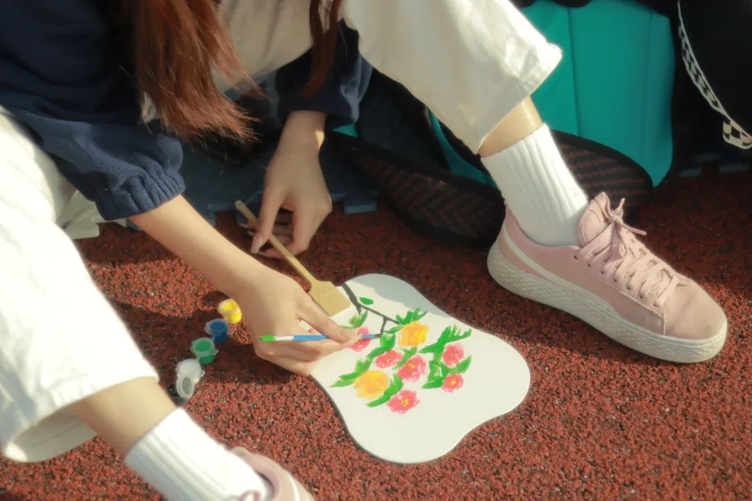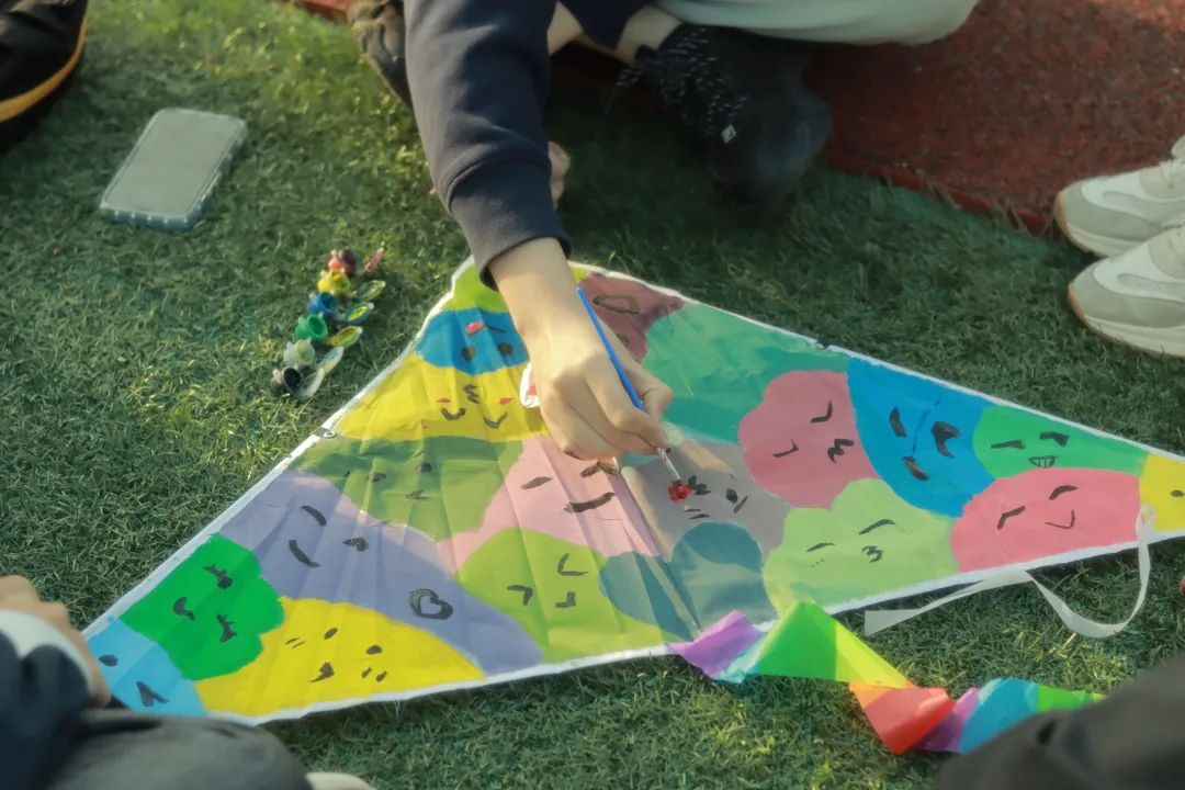 工作人员早早准备好了坐垫和绘画颜料,并详细地讲解了绘制纸鸢的注意事项。同学们可在一片空白中绘制出自己心中的春之色。多种颜色激烈碰撞,创造出别样缤纷;一撇一捺肆意挥洒,勾勒出生动神态;欢声笑语流淌环绕,营造出温馨时刻。