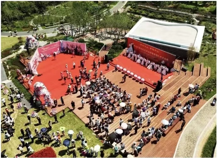 志愿者武锦涵也感慨到这场新时代文明实践集体婚礼搬到繁花似锦的森林公园倡导了低碳节俭,绿色自然,进一步弘扬了时代文明新风,倡树美德健康的新生活。