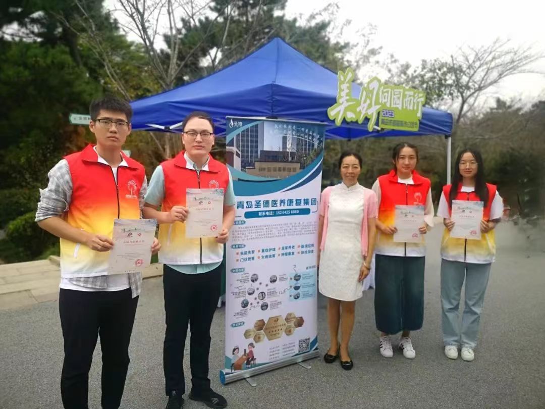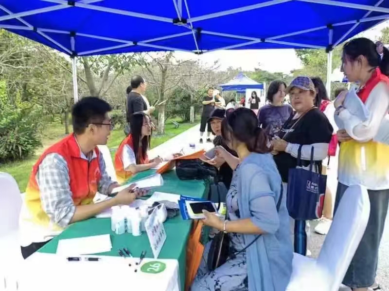 在城市公园节惠民大道市集活动现场,多家单位和组织将汇聚到一起,在公园里行爱心、做公益。经济学院经彩青春服务队的志愿者们联合圣德医养康复集团的医护人员为青岛市老年居民带来免费的血压血糖检测和脑健康筛查服务。志愿者们热情地同老人们交流,为前来咨询的老年人介绍有关老年认知症障碍的相关知识,通过筛查问卷细致评估老年人的认知能力、辨别能力、情景记忆等能力,对老年认知症进行预防筛查。团队还为老人们赠送了洗手液、湿巾等小礼品。