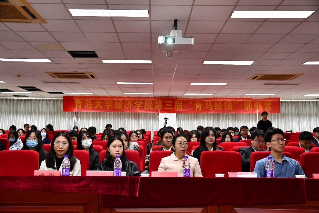 为进一步加强学生干部的思想建设和作风建设,不断提升学生干部的履职能力,强化学生干部的宗旨意识、表率作用和严实作风,培养一支新时代优秀大学生骨干队伍,11月25-26日,经济学院举办第三届“青马经领”训练营,邀请校内外老师,以书记谈、专家讲、朋辈说、营员悟等环节展开主题培训。青岛大学团委副书记赵斐斐,经济学院党委副书记于文洁、团委书记戴俊杰、辅导员曹影、吴不然、薛羽彤及训练营全体学员出席活动。
