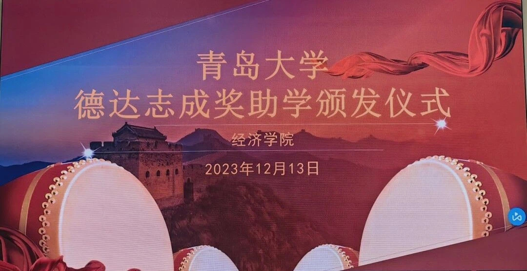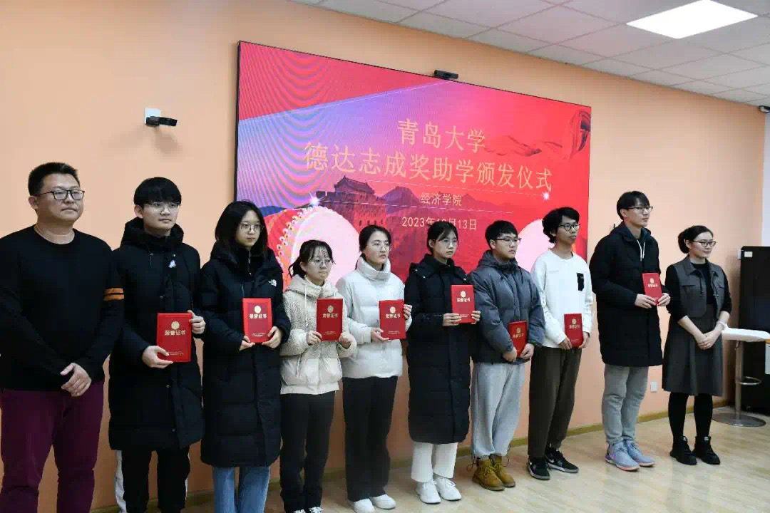 青岛德达志成化工有限公司作为优秀校友企业,在自身发展的同时,致力于服务社会、回报母校。12月13日下午,青岛大学“德达志成”奖助学金颁发仪式在金家岭校区守实楼423隆重举行。青岛德达志成化工有限公司总经理、2000级国贸优秀校友邹超,青岛德达志成化工有限公司人力资源部经理李毅,企业代表、青岛大学校友郭夏、徐晨,经济学院党委副书记于文洁,化学化工学院学工办主任付刚帮,材料科学与工程学院学工办主任林国红,辅导员薛羽彤、吴不然出席本次活动。仪式由经济学院学工办主任任龙主持。
