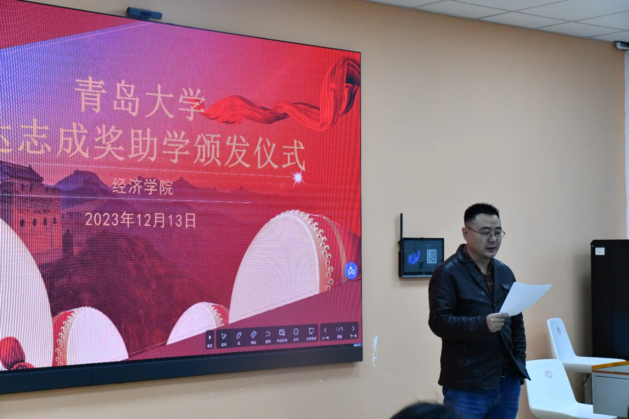 活动伊始,于文洁代表主办方致辞,向德达志成化工有限公司一行的到来表示欢迎,对德达志成奖学金设立人邹超表示感谢,对奖助学金的获得者表示祝贺。并从学院建设、获奖情况等方面分享学院的发展成效。她表示,无论是资助金额还是受助学生数量,都体现了校友对母校学子发展的关爱。同时,她向奖助学金获得者提出了三点希望,一是要珍惜荣誉,砥砺奋进。二是要以身作则,率先垂范。三是要坚定信念,志存高远。任龙宣读奖助学生名单,经济学院、化学化工学院、材料科学与工程学院共有30名学生获得青岛大学德达志成奖助学金。