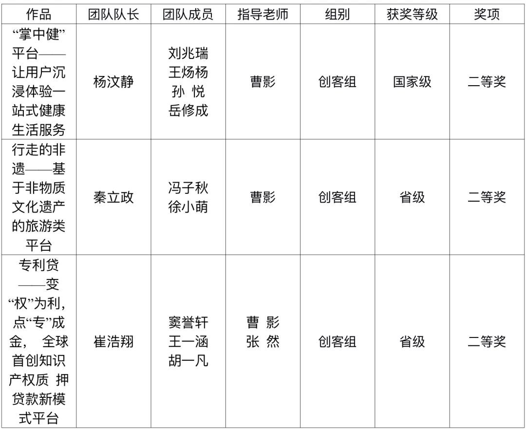在本次大赛中,我院学生团队层层突破,斩获佳绩。其中,由曹影老师指导的项目《“掌中健”平台——让用户沉浸体验一站式健康生活服务》获得国家级二等奖!